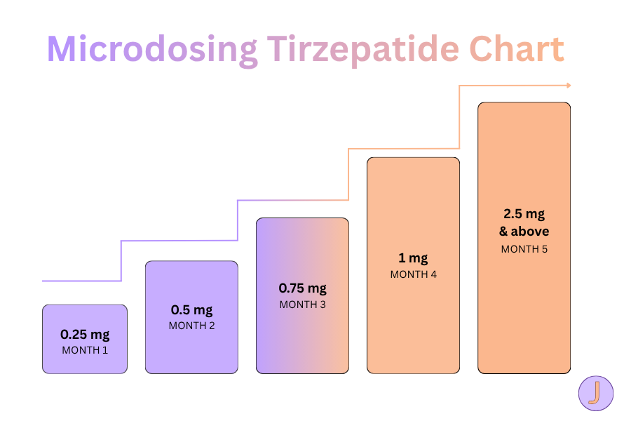 A tirzepatide microdosing chart that supports comfort, longevity, and gentle month-to-month increases.